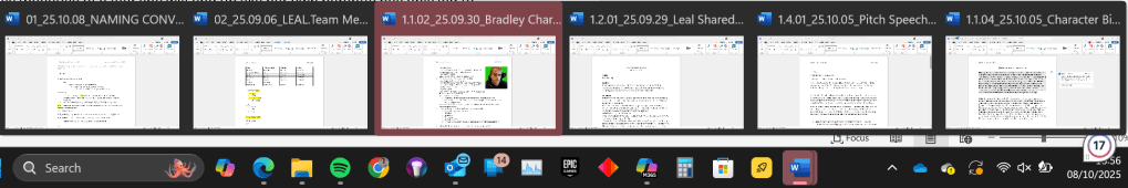 ‘Yeah, it’s named Outline 2.Final in the outline folder in the pre-productions folder.’